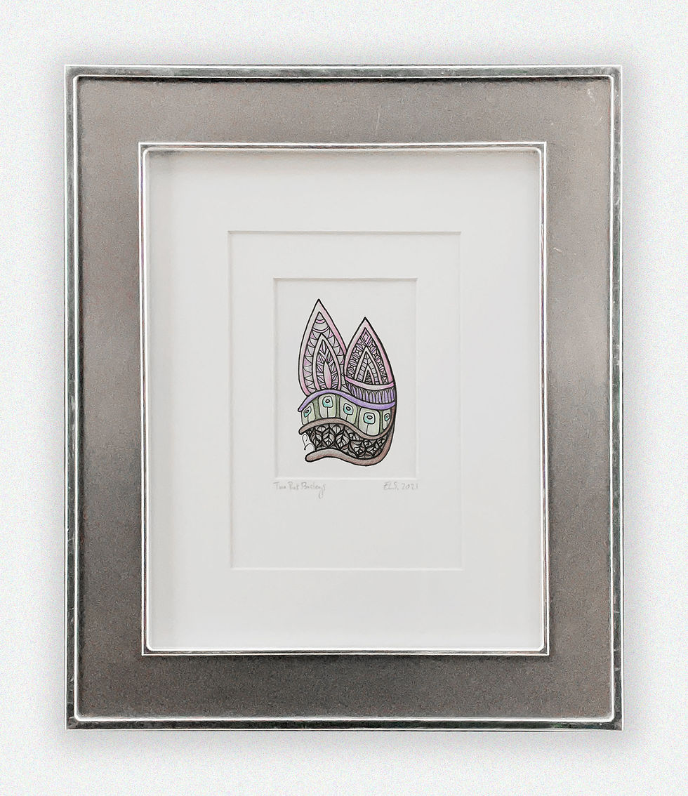 These framed original fine art and illustrations and limited run prints are made with ink on acid free paper. Also, the frames are vintage or up-cycled for an extra unique look.